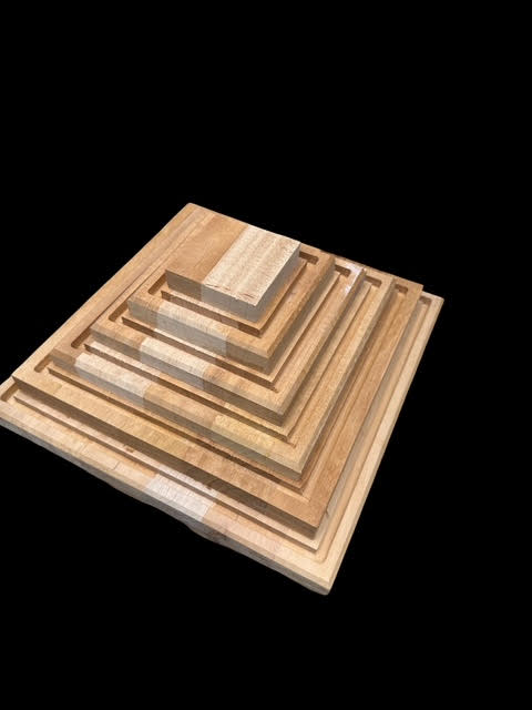 The pyramid was carefully assembled, sanded smooth, and finished with a rich stain to enhance the natural wood grain.